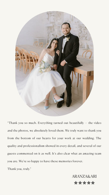 Yes. We only cover one event per day, allowing us to offer a fully personalized and exclusive experience for each couple.